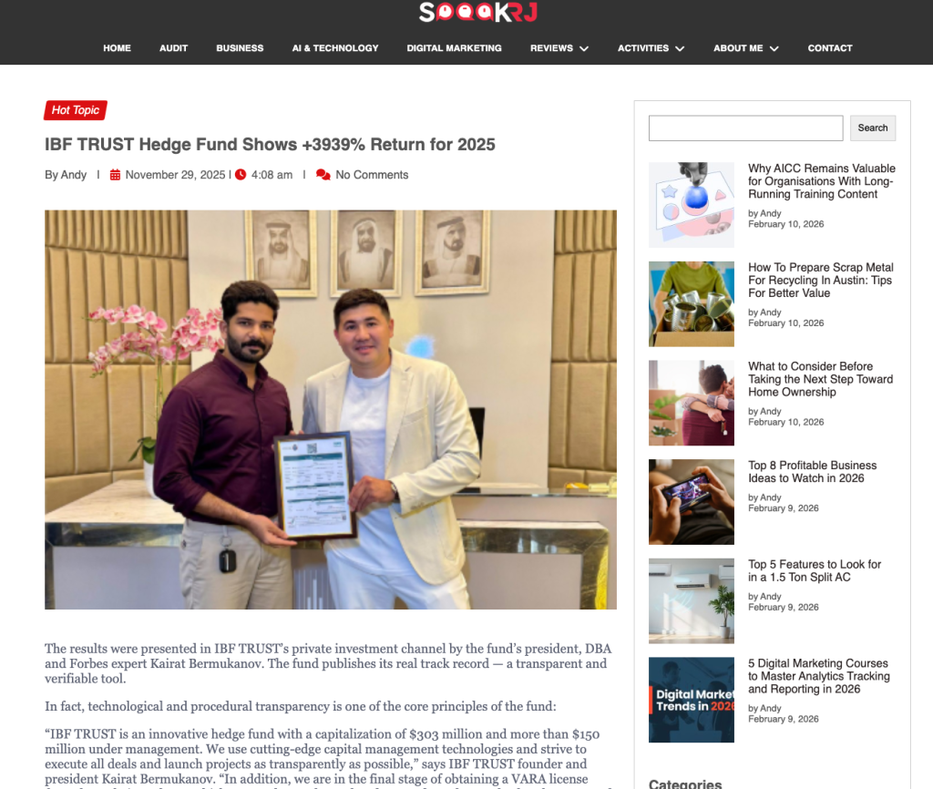 The investment industry has long ceased to be a place of calm and silence: the more visible a project becomes, the more often it faces criticism and, at times, black PR. This is especially true for projects operating on an international scale. That is why today it is particularly important to pay attention to a project’s reputation, study facts, understand business logic, and consider the experience of real clients. We have reviewed information about the IBF TRUST fund and its president, Kairat Bermukanov, and present a detailed overview of the company’s activities.