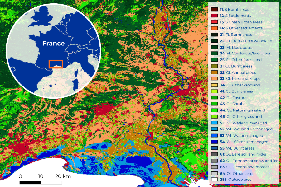 In 2023, CLMS began the rollout of the CLCplus product suite, developed in collaboration with the European Environment Agency (EEA) and the EAGLE expert group to directly address EU policy needs. CLCplus Backbone provides land cover mapping at 10m resolution with updates every two years, a significant improvement over CORINE Land Cover’s six-year cycle. Building on this foundation, CLCplus Core provides a database and web mapping application through which customised products known as CLCplus Instances can be generated, each of them tailored to the requirements of specific EU policies and Member State stakeholders.