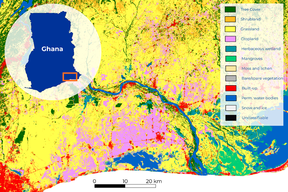 Niger and Ghana illustrate how these needs differ in practice. In the Sahel, where land degradation, rainfall variability, and fragmented data collection make consistent monitoring difficult, CLMS land cover time series and vegetation productivity indicators provide the baselines required to assess restoration at the project level. In Ghana, where forest conservation must remain coherent alongside economic development over decades, CLMS Global Land Cover and Tree Cover Density products can provide harmonised, regularly updated baselines to support the development of national inventories.